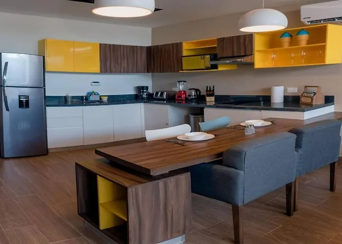 Dispone de una cocina completa para los viajeros. A 5 minutos a pie, los huéspedes podrán comer en los restaurantes La sirenita y La Bamba Jarocha. Se tarda solo 5 minutos en coche en llegar al Aeropuerto Nacional de Playa del Carmen. Este apartamento dispone de una piscina privada.